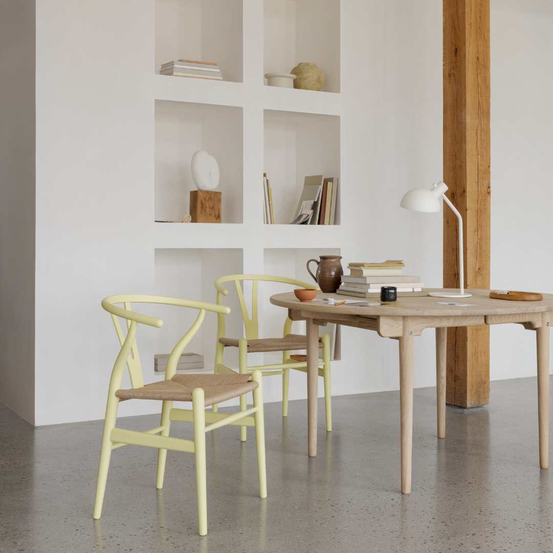 Um Hans J. Wegners mehr als 70-jährige Zusammenarbeit mit Carl Hansen & Søn zu feiern, weitet das Unternehmen nun seine Zusammenarbeit mit der Londoner Designerin Ilse Crawford aus und präsentiert den Wishbone Chair in neun neuen Farben. Hans J. Wegner entwarf im Jahr 1949 den weltbekannten Wishbone Chair (CH24) für Carl Hansen & Søn. Dieser wird seit inzwischen mehr als 70 Jahren ohne Unterbrechung produziert. Um diesen Meilenstein zu feiern, wählte Ilse Crawford neun matte Farben aus, die dem Sitzmöbel eine neue Perspektive verleihen. Alle Farben sind umweltfreundlich, wasserbasiert und widerstandsfähig. Daher sind sie sowohl für den privaten als auch für den öffentlichen Gebrauch perfekt geeignet. „Wir wollten eine Palette aus Farben kreieren, die unsere heutige Zeit widerspiegelt. Wir glauben, dass diese gedeckten Farbtöne dem heutigen Publikum sehr gefallen werden“, erklärt Ilse Crawford „Es sind keine Standardfarben, die von den Trends der Zeit bestimmt werden, sondern Farbtöne, die jeder Einrichtung Tiefe und Komplexität verleihen.“ Die malerischen Farben zelebrieren Pflanzen, Mineralien und den Ackerboden, die alle die raue Schönheit der nordischen Landschaft ausmachen, und sie funktionieren sowohl individuell als auch im Zusammenspiel miteinander. „Farben sind so eng mit unseren Emotionen und unserer Stimmung verbunden“, sagt Crawford, „und wir glauben, dass diese gedämpften Töne dazu beitragen werden, eine warme, entspannte und natürliche Umgebung zu schaffen.“