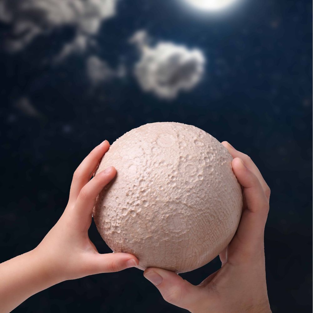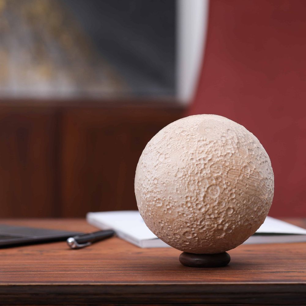 Anhand der neuesten Mondoberflächendaten der NASA aus dem Jahr 2021 übertrug BIG die exakte Geometrie des Mondes auf ein 3D-Modell. Mit höchster Präzision diente dieses Modell als Vorlage, um die Berge und Krater des Mondes aus massivem Ahornholz herauszuarbeiten und so sowohl extreme Genauigkeit als auch eine glatte Oberfläche zu erzielen.