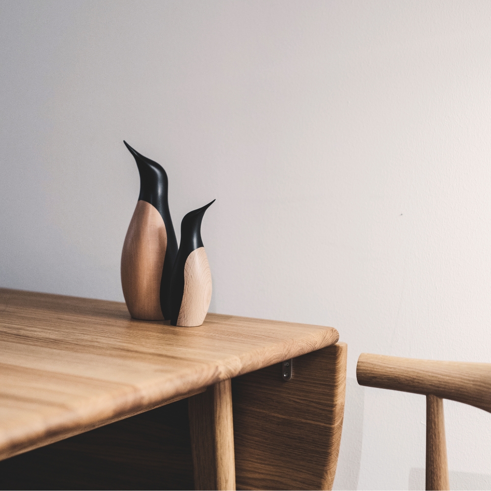 Majestätische Linien und einladende Konturen werden in Handarbeit aus seidenweichem Buchenholz und dem einzigartig nuancierten Wengeholz gefertigt. Je nachdem, wie Sie die Pinguine anordnen – ob einzeln oder in einer Gruppe – symbolisieren sie auf elegante Weise familiäre Bindungen, Freundschaft und Liebe.