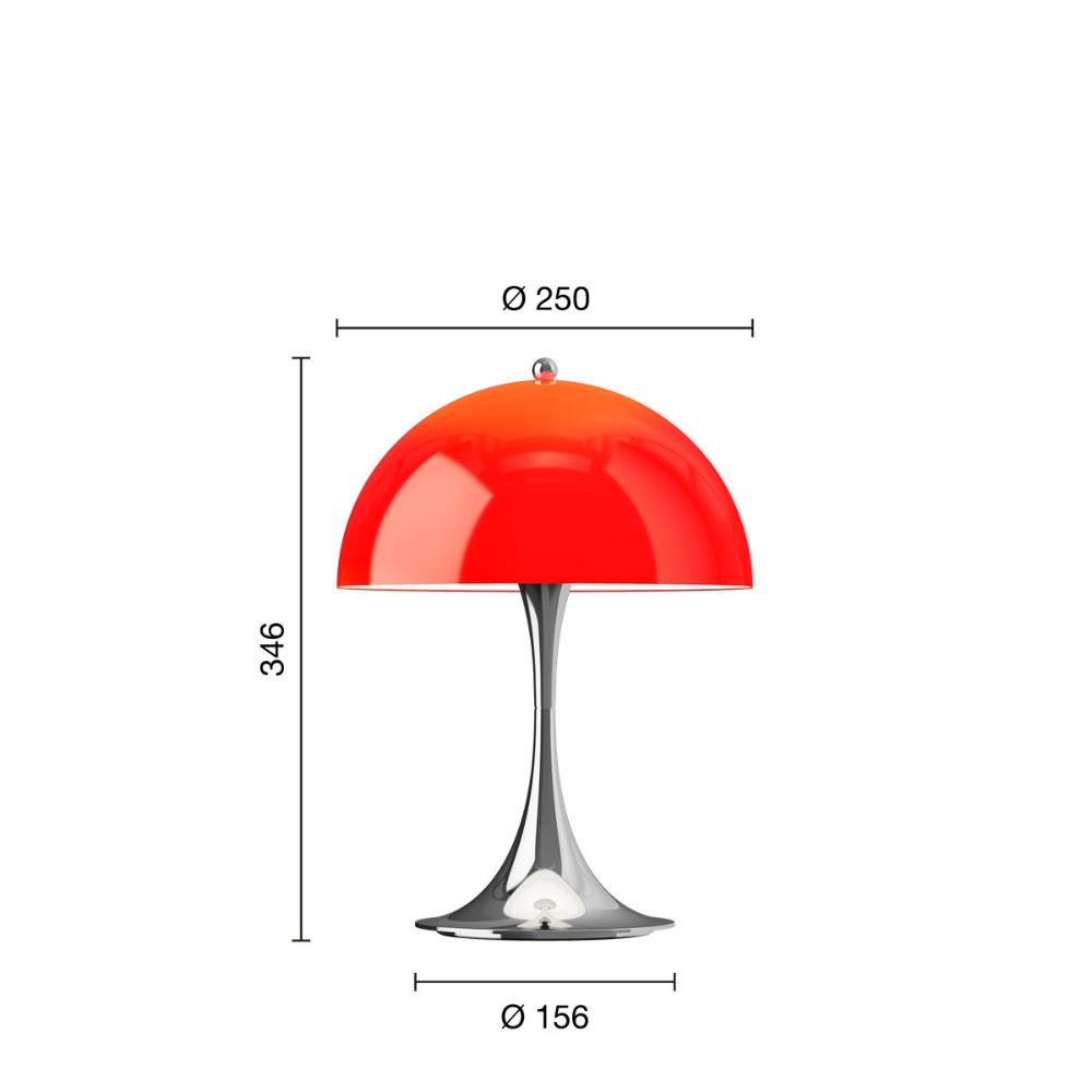 Die erste Panthella Leuchte, die Verner Panton entwarf, wurde 1971 in fünf leuchtenden Farben mit Chromständer eingeführt. Ein kühner Ausdruck aus kühnen Materialien, der die Leuchte als innovatives und verspieltes Designobjekt auf eine Weise hervorhob, wie es das zuvor noch nicht gegeben hatte.