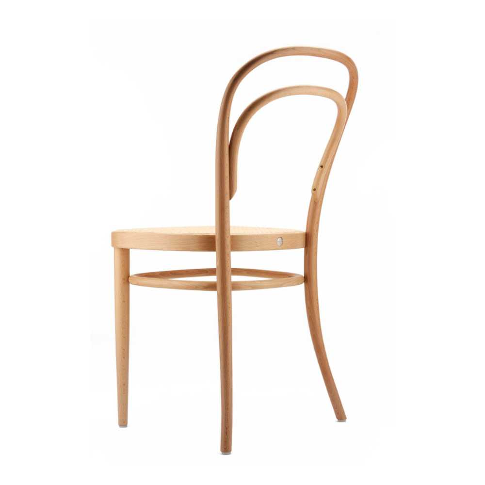 Der berühmte Kaffeehausstuhl ist eine Ikone und gilt bis heute als das gelungenste Industrieprodukt der Welt: Mit ihm begann die Geschichte des modernen Möbels. Basis war eine neue Technik, das Biegen von massivem Holz, das Michael Thonet in den 1850er Jahren perfektionierte und damit eine Serienfertigung überhaupt erst möglich machte. Und es gab eine geniale Vertriebsidee: In einer Kiste mit einem Kubikmeter wurden 36 zerlegte Stühle verpackt, in die ganze Welt geschickt und vor Ort montiert. Mit seiner klaren reduzierten Ästhetik findet dieser Klassiker seit über 150 Jahren in unterschiedlichsten Umgebungen seinen Platz. Produziert wird er in unserem Werk in Frankenberg. Ohne Armlehnen, Rücken offen oder mit Rückenteil (215). Sitze und Rückenteil mit Rohrgeflecht* bespannt oder bezogen mit Leder oder Stoff. Sitze auch als Sperrholz Muldensitz erhältlich. Alle Holzteile in Buche gebeizt. * Für Sitzflächen, die starker Belastung ausgesetzt sind, gibt es unter dem Geflecht ein transparentes, stabiles Kunststoffnetz.