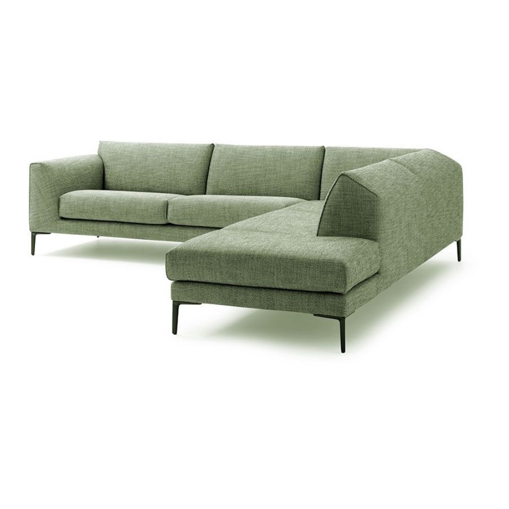 Durch die niedrige Rücken- und Armlehnen und dem schräg zurückgesetzten Boden erhält das Sofa sein elegantes und ausgewogenes Aussehen. Der charakteristische Rückfall verleiht Develius eine luftige Silhouette und gewinnt durch seine klaren Linien einen nordisch dezenten Look.