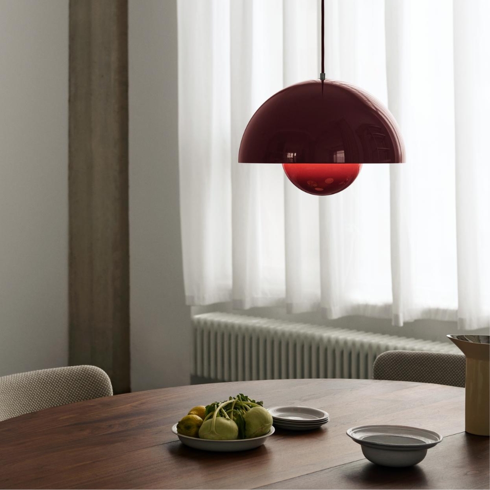 und ist charakteristisch für Vernor Pantons Arbeit. Die abgerundeten Linien und die harmonische Integration der beiden Metall-Halbkugeln der Flowerpot verleihen der Lampe eine organische Ästhetik und erzeugen ein angenehmes Licht.