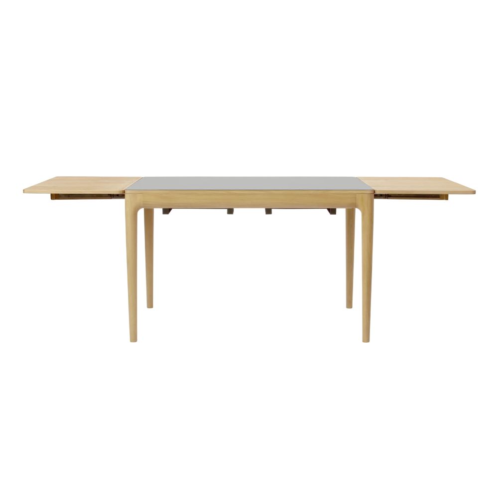 Verlängerungsplatten, wodurch der Tisch auch im ausgezogenen Zustand stabil bleibt. Die Verlängerungsplatten